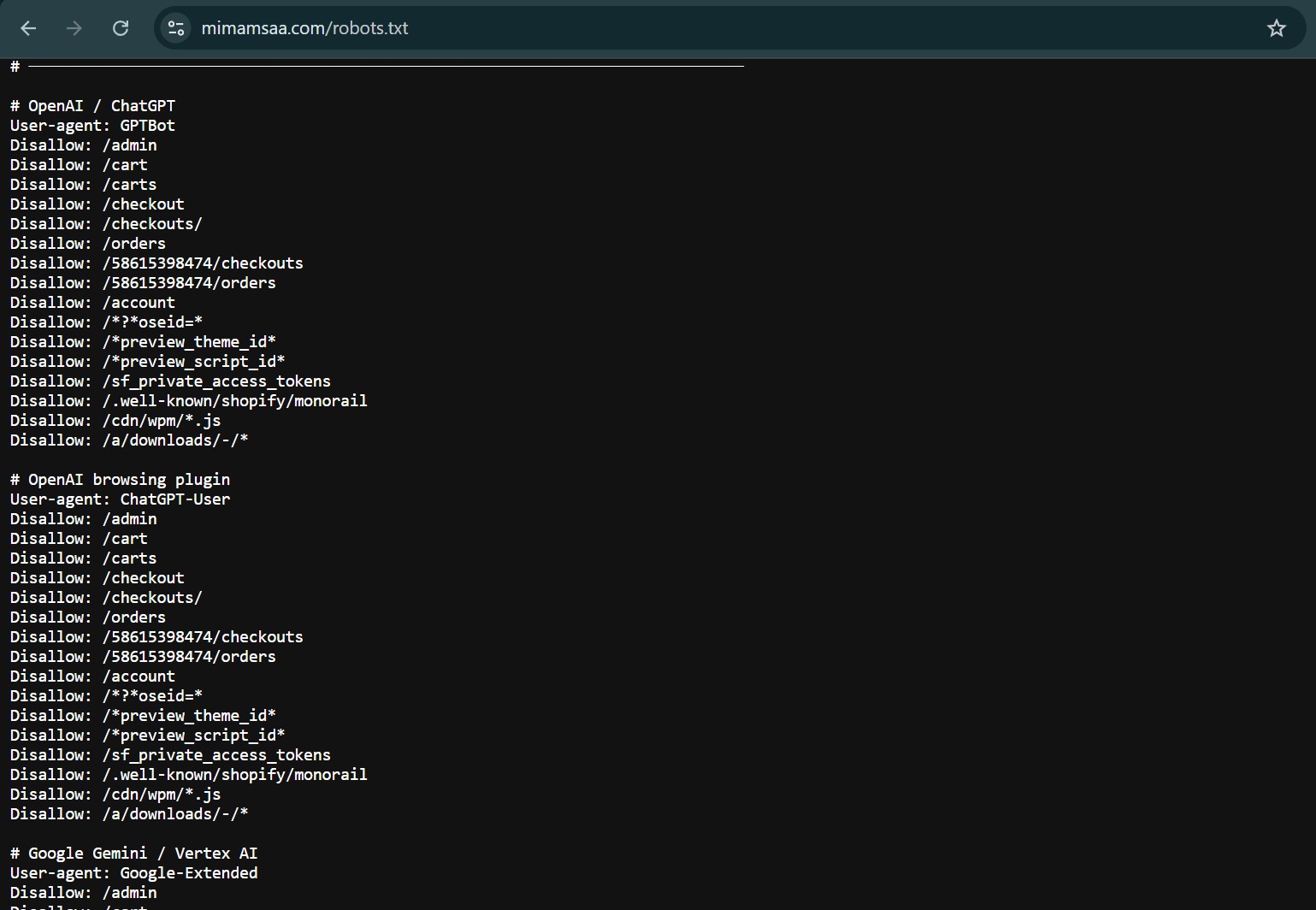 We updated the robots.txt file to allow access to major AI agents and crawlers, ensuring Mimamsaa’s website can be indexed by modern AI-powered search systems.